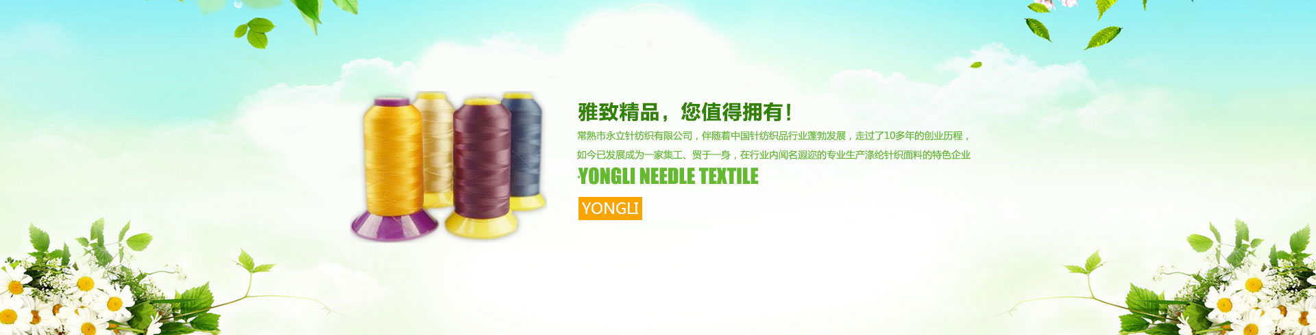 公司成立于1997年,坐落于風景秀麗的虞山腳下,位于中國經濟最活躍的版圖--長江三角洲經濟技術開發(fā)區(qū)的黃金地段上,常熟市永立針紡織有限公司,伴隨著中國針紡織品行業(yè)蓬勃發(fā)展,走過了10多年的創(chuàng)業(yè)歷程,如今已發(fā)展成為一家集工、貿于一身,在行業(yè)內聞名遐邇的專業(yè)生產滌綸針織面料的特色企業(yè)。本公司擁有來自臺灣的先進制造設備,以雙面小提花機為主的34寸(16--45針)雙面緯編機50臺、34寸(20--50針)單面開幅機9臺、36寸 22針德國邁耶OVJE雙面電腦大提花機6臺及其他先進設備。憑借著一流的設備,以及“人無我有,人有我好,人好我轉”的經營理念,常熟永立一直致力于滌綸面料的創(chuàng)新...